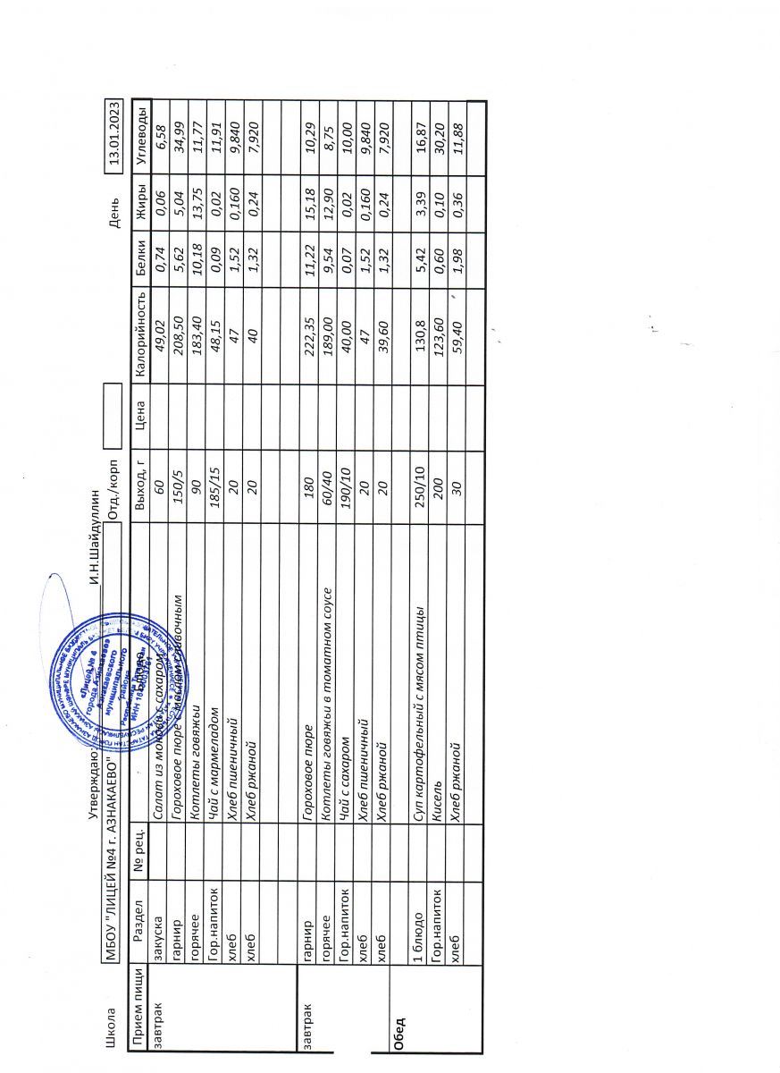 - Меню на 13 декабря