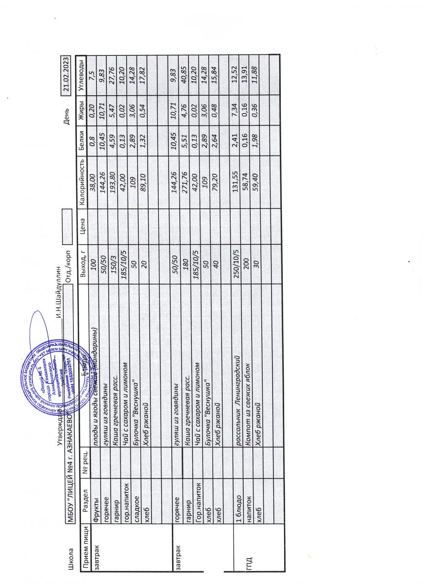 - Меню на 23 сентября