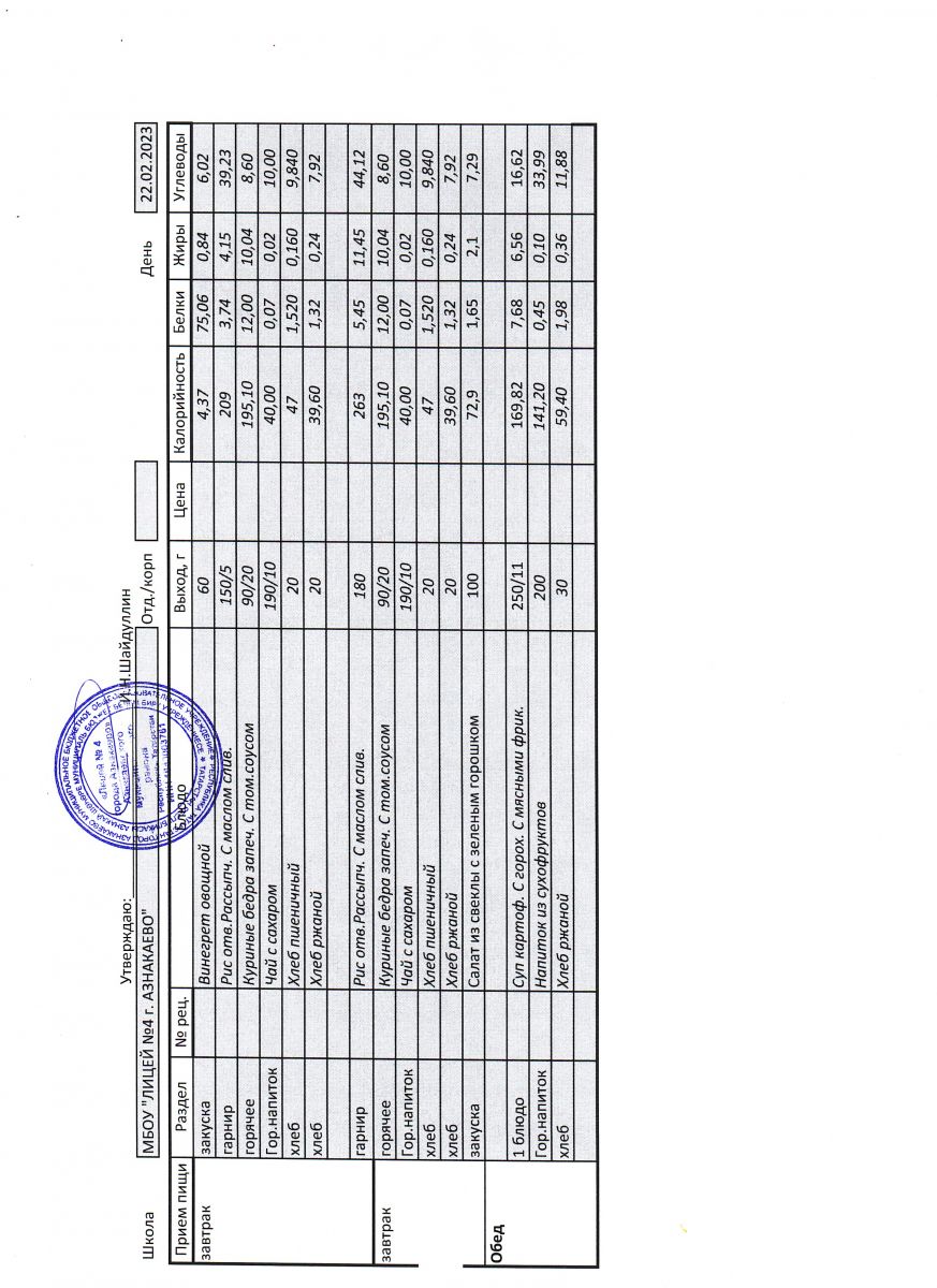 - Меню на 23 ноября