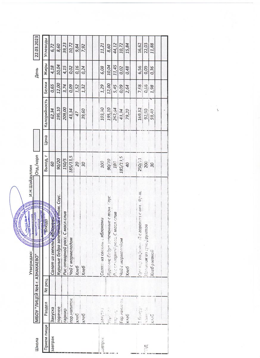 - Меню на 22 сентября