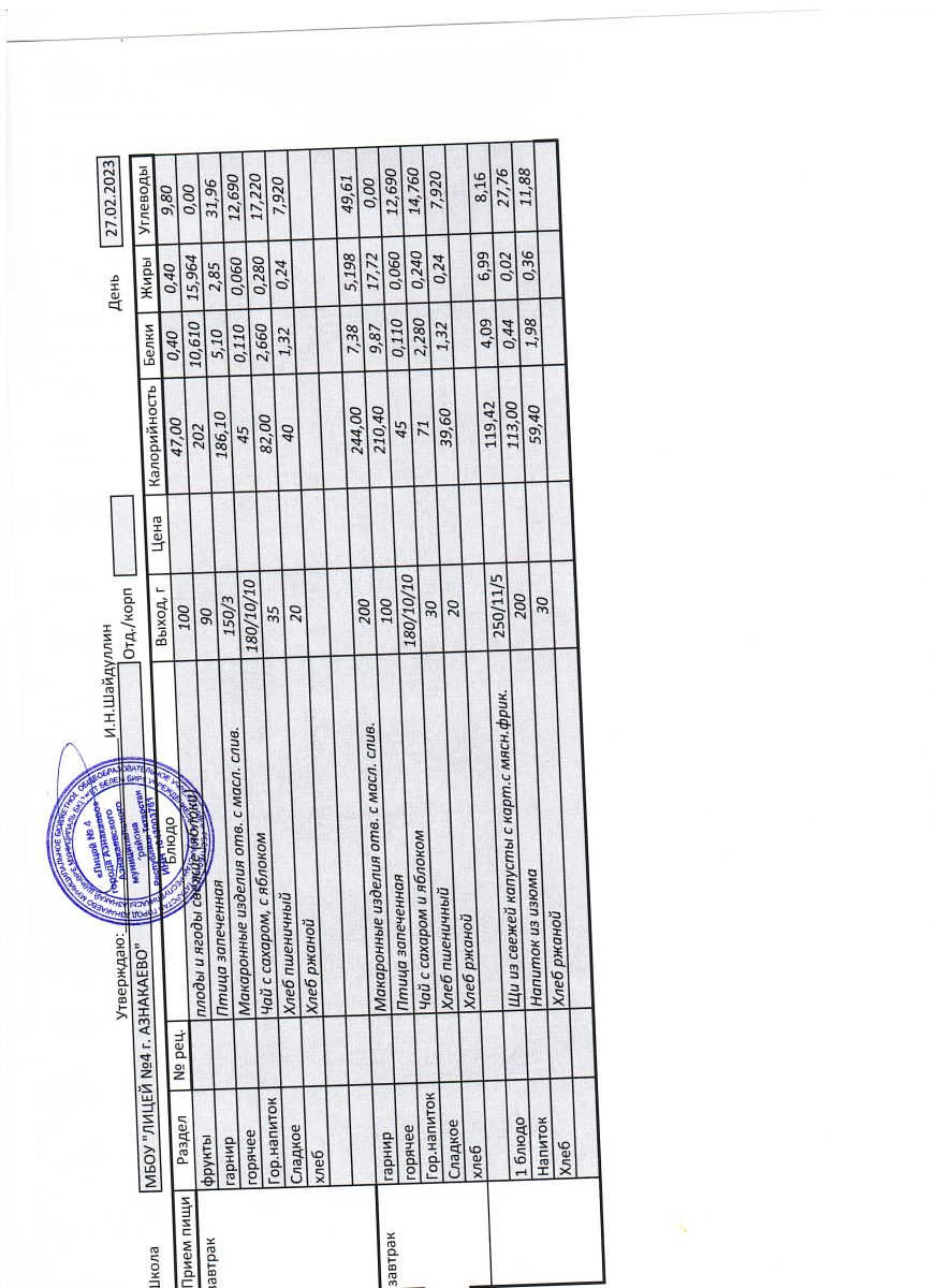 - Меню на 27 октября