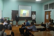 Агитбригада 9А кл.отряда Юнармии "Соколы" выступают в 8Б кл. 13.10.2022