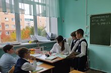 29.09.22г. Выступление агитбригады отряда "Соколы" Юнармии, 9А кл.в 6А классе.