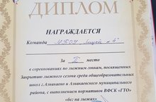 19 марта 2022 года прошли соревнования по лыжным гонкам, посвященных Закрытию лыжного сезона среди образовательных школ г.Азнакаево и Азнакаевского муниципального района с выполнением норматива ВФСК "ГТО" "бег на лыжах". Ученица 7А класса Тазова Ксения заняла 3 место,учащийся 8Б класса Хабибуллин Салават занял 2 место, учащиеся 5А класса Сулейманова Ляйсан заняла 1 место в личном первенстве. Команда лицея завоевала 2 место. Молодцы!