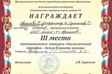 Ежегодно среди учащихся начальных классов Азнакаевского района проходит конкурс - марафон предметов. В этом году конкурс был посвящён проблемам экологии и назывался "Земля - планета жизни". В конкурсе приняли участие 19 команд района. От лицея с защитой проекта выступили ученицы 3Б класса Авзалова Фарида, Лотфуллина Азалия, Султанова Рания и ученица 2Б класса Каракылыч Алейна. Руководители - Гарифуллина Гульнара Рафаиловна и Сагитова Альфия Назиповна. Наша команда заняла почётное III место. Поздравляем!