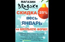 В течение января 2014 года в магазинах ООО "Бросско" (швейная фабрика) будет скидка 25% на школьную форму.