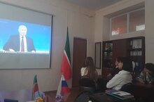 Сегодня в рамках урока обществознание учащиеся 11х классов совместно с учителем общества Шайдуллиным И.Н. приняли участие в просмотре прямой линии и пресс-конференции В. В. Путина.