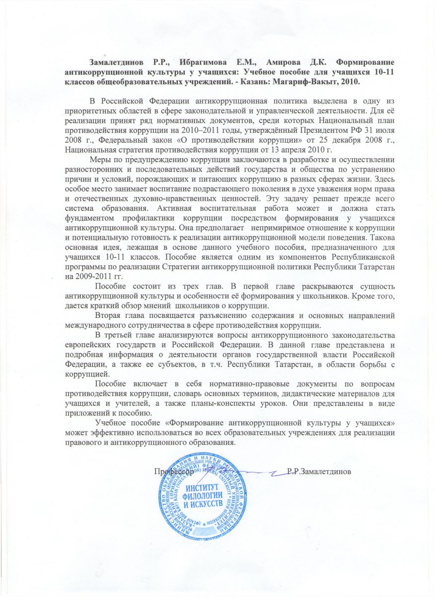 Нормативно-правовые документы по антикоррупции. МОиН РФ и МОиН РТ