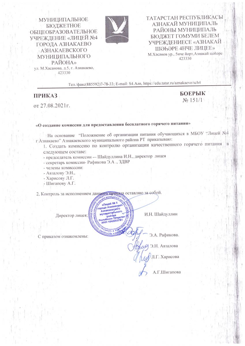 | Короткое название: | МБОУ "Лицей №4 г.Азнакаево" АМР РТ |