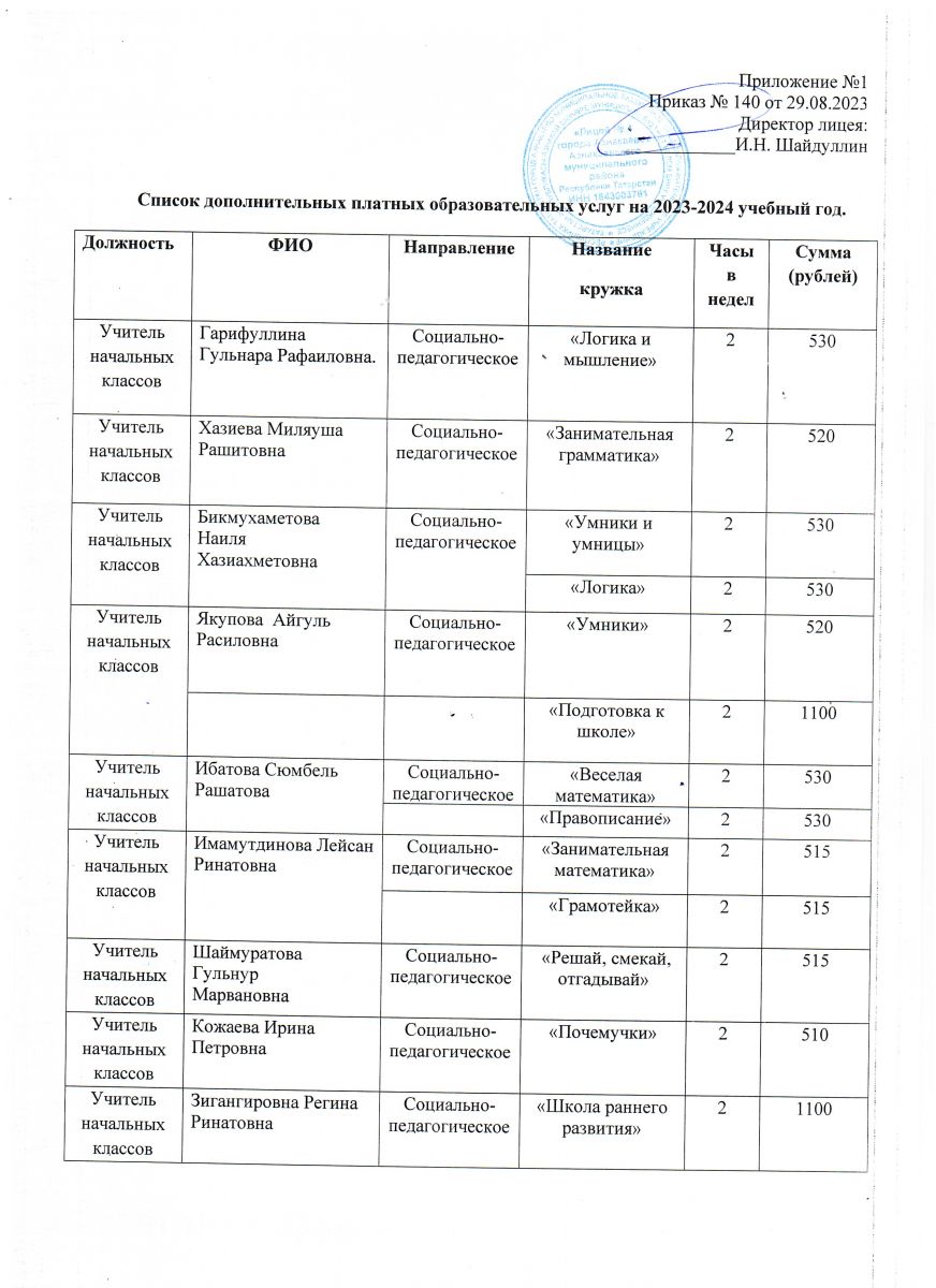 Список дополнительных платных образовательных услуг на 2023-2024 учебный год
