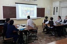 В рамках предметной недели математики и информатики сегодня был проведен открытый урок по информатике в 10Б классе «Обработка символьных строк» для учителей информатики города и района.