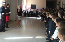 ДДТТ профилактикасы өчен мәктәптә башлангыч сыйныф укучылары өчен гомуммәктәп линейкалары узды, полиция капитаны Исхакова И. И. һәм ДКУ Азнакай филиалы начальнигы Сәгъдәтуллиннар А. Р. катнаштылар