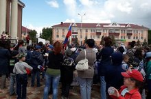 Воспитанники пришкольного лагеря ,,Родничок,, на районном флешмобе, посвященном Дню России