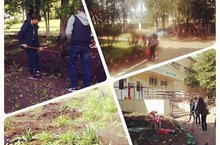 Ребята из трудового лагеря облагораживают пришкольный участок