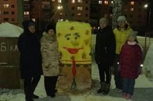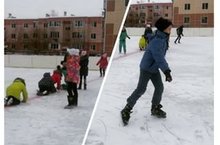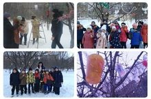 Яблони в школьном саду дети и родители украсили ледяными разноцветными фигурками