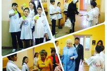 Акция "Подари улыбку" в рамках реализации антинаркотического проекта "SMS-дети". Участники детского движения "SMS-дети" дарили каждому гостю школы смайлик для поднятия настроения!