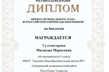 В региональной олимпиаде по биологии наша ученица 9Б класса Султангирова Миляуша стала ПРИЗЁРОМ. Руководитель - Байкова Вера Римовна. От всей души поздравляем призёра!!!