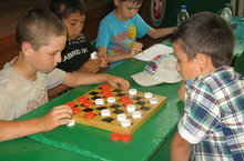 В пришкольном лагере шашечный турнир.