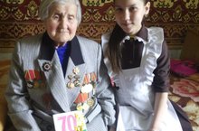 Наследники 7Б класса поздравили участника ВОв Аксанову М. Ф. с наступающим праздником - Днём Победы. Классный руководитель: Хазиахметова А. Х.