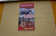 Установка банера, посвящённого 70-летию Победы в Великой Отечественной войне на фасаде здания школы.