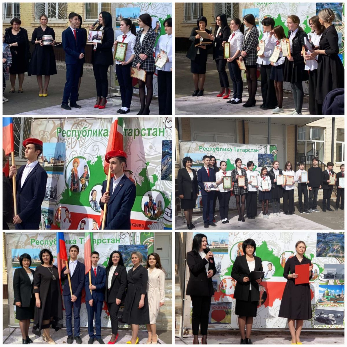 Сегодня в школе прошёл Единый день поднятия государственного флага. На торжественной линейке в честь данного события были награждены самые лучшие учащиеся.Бүген мәктәптә бердәм дәүләт әләмен күтәрү көне узды. Тантаналы линейкада әлеге вакыйга уңаеннан иң яхшы укучылар бүләкләнде.