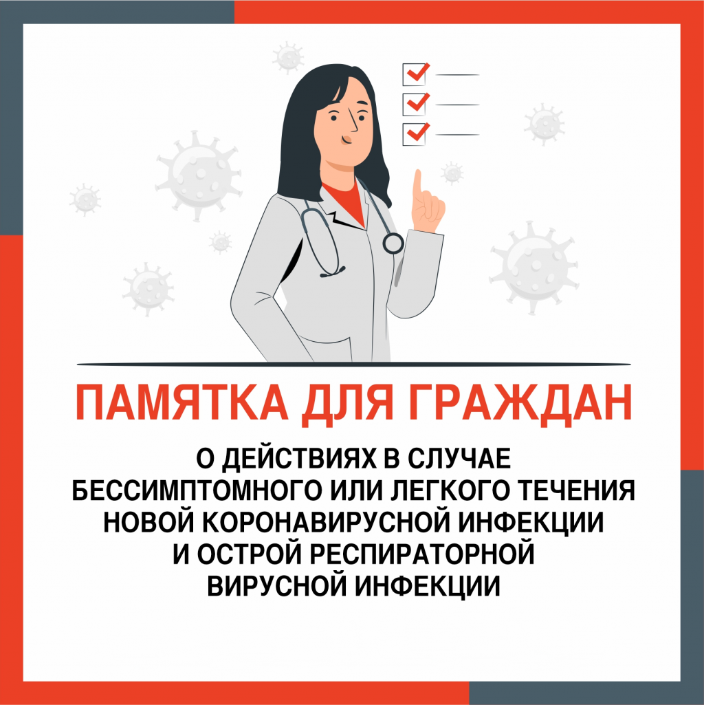 Памятка для граждан о действиях в случае бессимптомного или легкого течения новой коронавирусной инфекции и острой респираторной вирусной инфекции