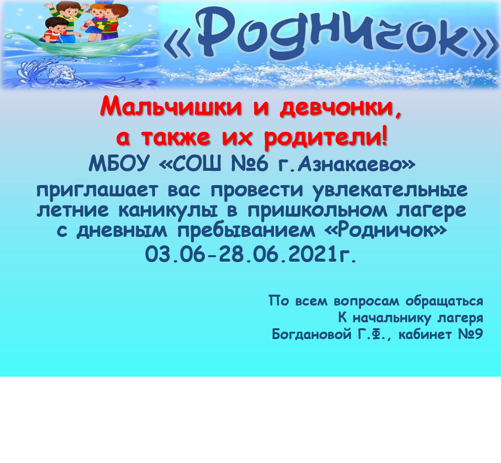 Пришкольный дневного пребывания лагерь "Родничок" начинает работу!