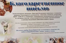 Еще одна награда в копилку наших достижений - Благодарственное письмо от зооволонтерского движения Азнакаевского муниципального района.