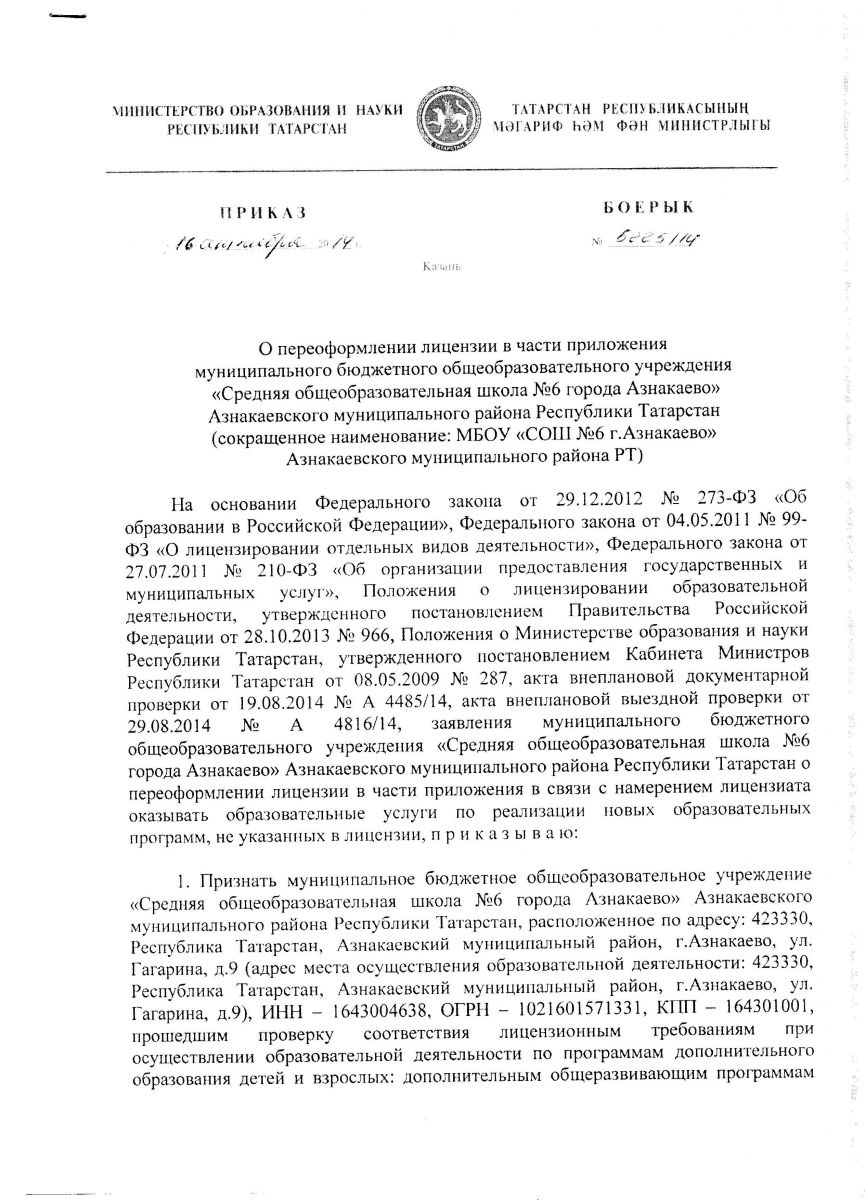 Муниципальное бюджетное общеобразовательное учреждение «Средняя общеобразовательная школа №6 города Азнакаево" Азнакаевского муниципального района Республики Татарстан /Татарстан Республикасы Азнакай муниципаль районы муниципаль бюджет гомуми белем учреждениесе "Азнакай шәһәре 6 нчы урта гомуми белем бирү мәктәбе"