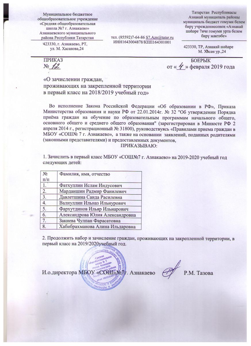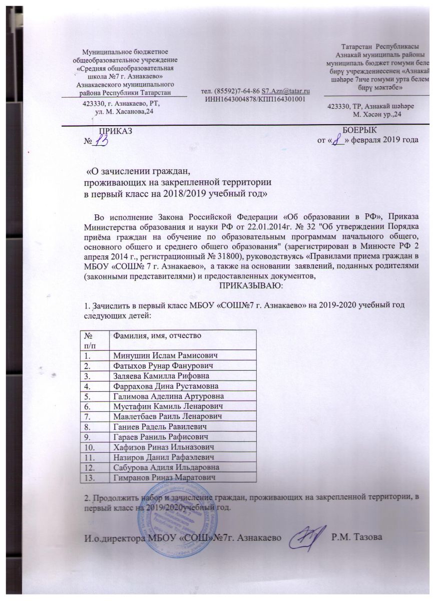 Зачисление в 1 класс (ПРИКАЗЫ)
