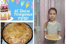 В рамках празднования 5-летия РДШ учащиеся 5а класса, члены отряда волонтёров, приняли участие в акции "Юбилейный пирог"