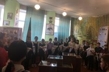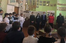Педагоги-ветераны-комсомольцы и члены совета старшеклассников(обладатели медалей"За участие на параде") приняли в ряды РДШ учащихся 5а класса, членов отряда волонтёров.