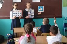 Учащиеся 4а класса, члены отряда ЮИД провели в 1б классе беседу на тему :"Правила дорожного движения знай как таблицу умножения". Первоклассники познакомились с правилами перехода через проезжую часть, с дорожными знаками. В конце юидовцы провели игру «Угадай знак».