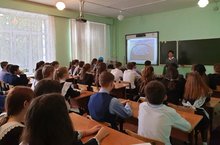 В 8А и 8Б классах прошел кл.час "Учитель! Как много в этом слове...".На кл.часу выступила Почетный работник общего образования Министерства образования и науки РФ, заслуженный работник культуры Республики Татарстан, учитель, посвятившая 44 года воспитанию и обучению подрастающего поколения - Гатауллина Файруза Насибулловна. -