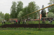 Продолжается работа на пришкольном участке. Учащиеся 10 класса 19 мая посадили картошку
