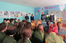 21 февраля в МБОУ «СОШ№8» проведен урок мужества для учащихся классов полиции и отряда «Юнармия» с участием сотрудников ПДН-начальника отдела кадров ОМВД России по Азнакаевскому району, Гульназ Мубарякановны, председателя совета ветеранов ОМВД Гульсины Ахмадиевны, начальника Актюбинского ОМВД, участника боевых действий Хафизова Артура Анисовича.
