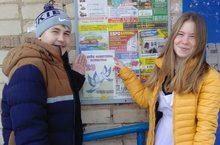 Члены тимуровского отряда «Звезда» поздравили жителей микрорайона с Днем защитника Отечества (Классный руководитель Исрафилова Г.Г.)