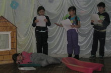 29 декабря в пришкольном лагере "Снежинки" провели мероприятие «Все любят сказки». Дети разделились на группы для постановки сказок "Морозко", "Снегурочка", "Три медведя" . Все остались довольны своими ролями и проделанной работой.