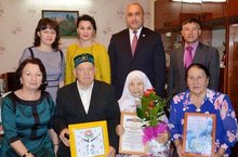 Глава района М.З.Шайдуллин, начальник управления образования Э.Й.Зарипова, председатель СПО Р.М.Хасанова, председатель профкома Г.А.Хайртдинова, директор школы А.М.Хамидуллин, председатель Совета ветеранов школы № 8 г.Азнакаево Ганиева З.Н. поздравили с 85-летием Хакимьянову Зайтуну Габдулловну - ветерана школы № 8.