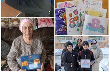 7 а сыйныф укучылары, Җиңү волонтерлары, ветеран укытучыларны, микрорайонда яшәүче хатын-кызларны 8 Март - Халыкара хатын-кызлар көне белән котладылар.