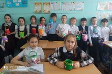 Учащиеся 3б класса в кружке "Палитра" и на уроке технологии сделали мамам на 8 Марта корзиночку