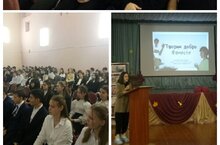 7 а сыйныф укучылары-Җиңү волонтерлары, "Игелекле Азнакай" акция кысаларында үткәрелгән волонтерлар белән очрашуда катнаштылар