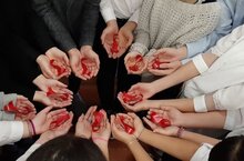 Балалар үз куллары белән СПИД белән көрәшү халыкара символы булган кызыл тасмалар ясадылар, “ялкын”ны плакатка беркеттеләр, моның белән ВИЧ-инфекция авыруларына ярдәм күрсәтүне күрсәттеләр