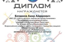 Учащийся Богданов Амир занял 2 место в в Республиканском этапе Всероссийского конкурса научно-технического творчества учащихся «Юные техники XXI века» в номинации «Робототехника, автоматика и интеллектуальные системы»