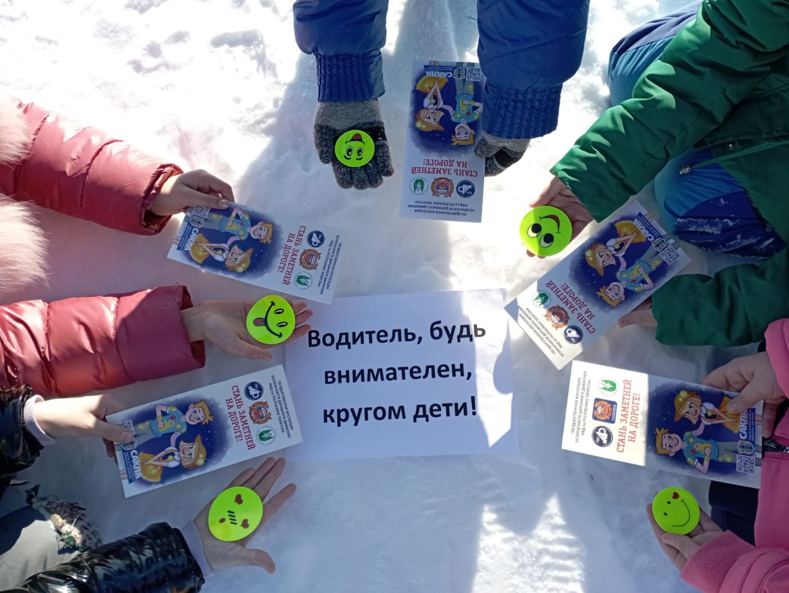 Акция Җәлил урамында Мәлбагыш авылында үтте. Юл-транспорт һәлакәтләре санын киметү максатыннан безнең мәктәптә балалар юл-транспорт травматизмын кисәтү буенча " Юлда сизелерлек бул!" исемендә үтте.#ГодПедагогаНаставника