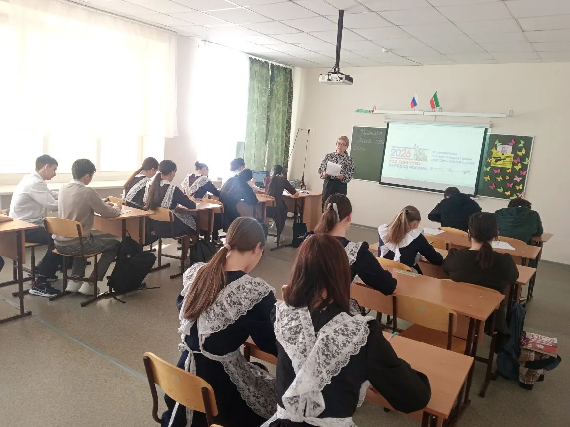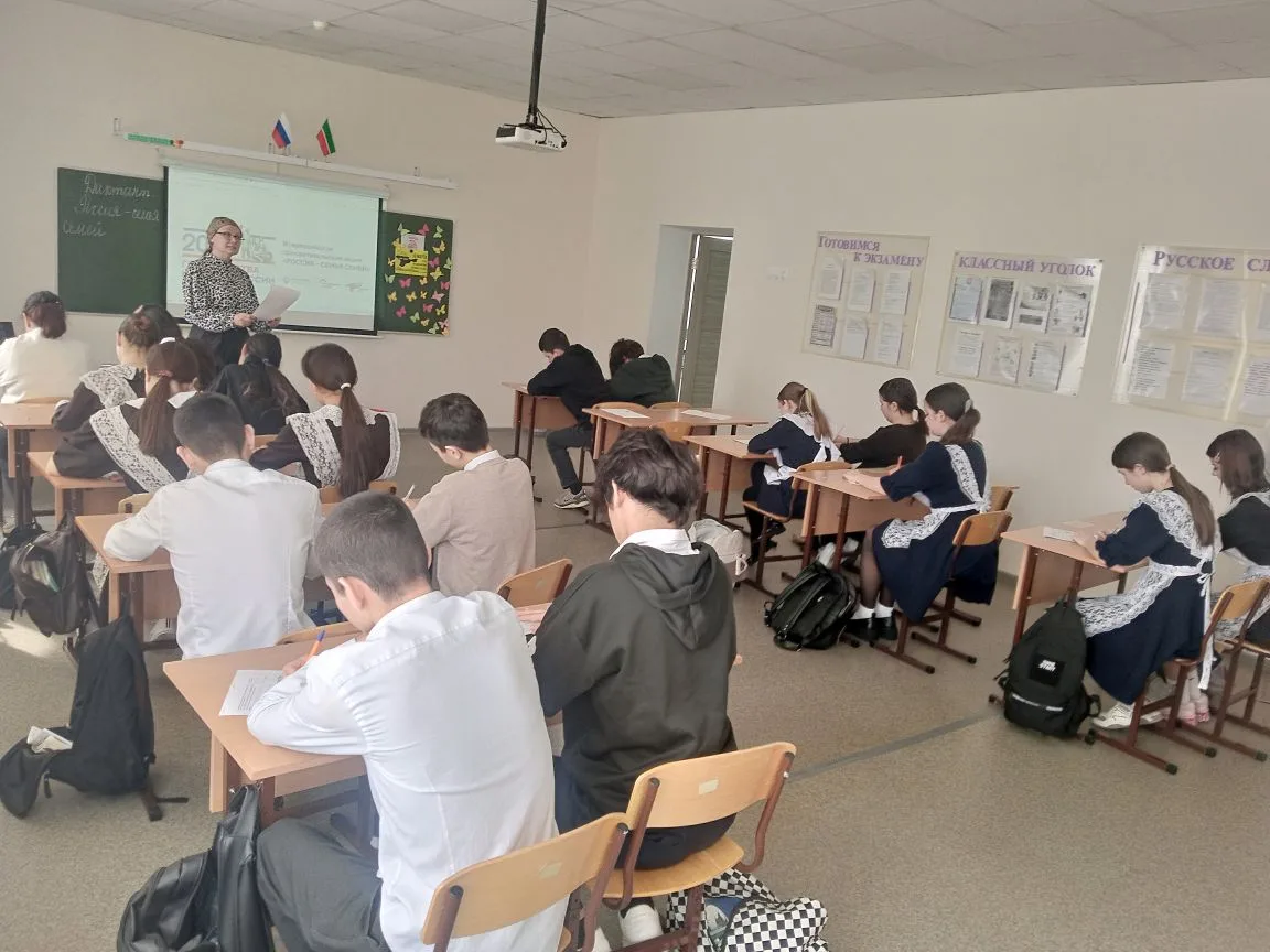18 марта 2026 года по всей стране проходит просветительская акция-диктант «Россия — семья семей», приуроченная ко Дню воссоединения Крыма с Россией. Наша школа тоже присоединилась к этой акции, чтобы ещё раз подчеркнуть важность единства, исторической памяти и преемственности поколений. Участие приняли ученики старших классов, педагоги и родители, что сделало это событие по-настоящему семейным и всеобщим.