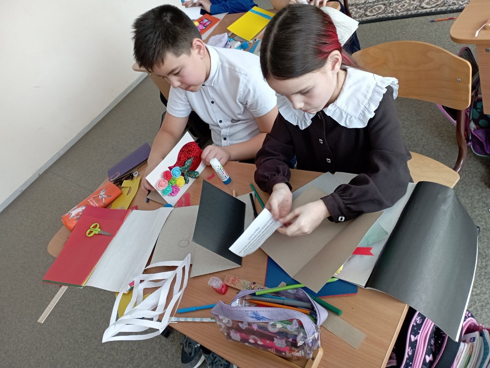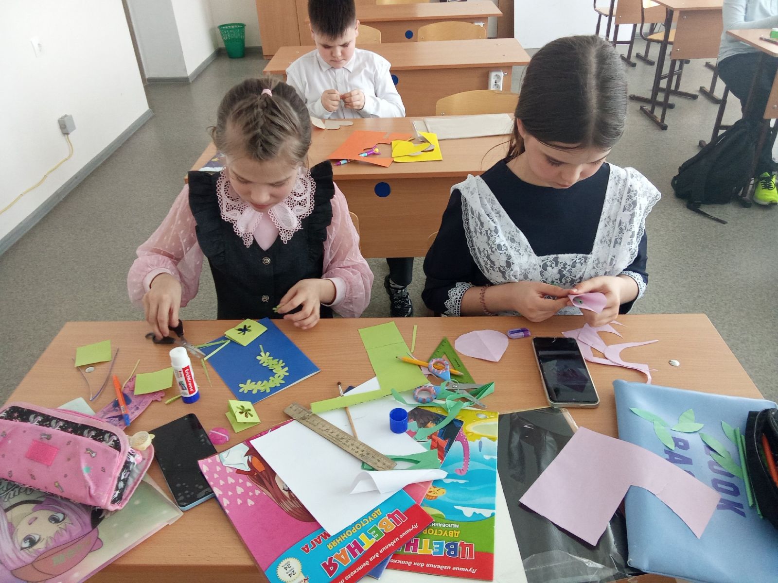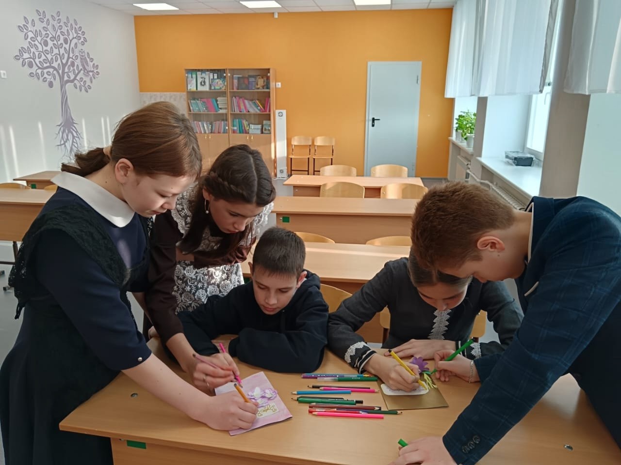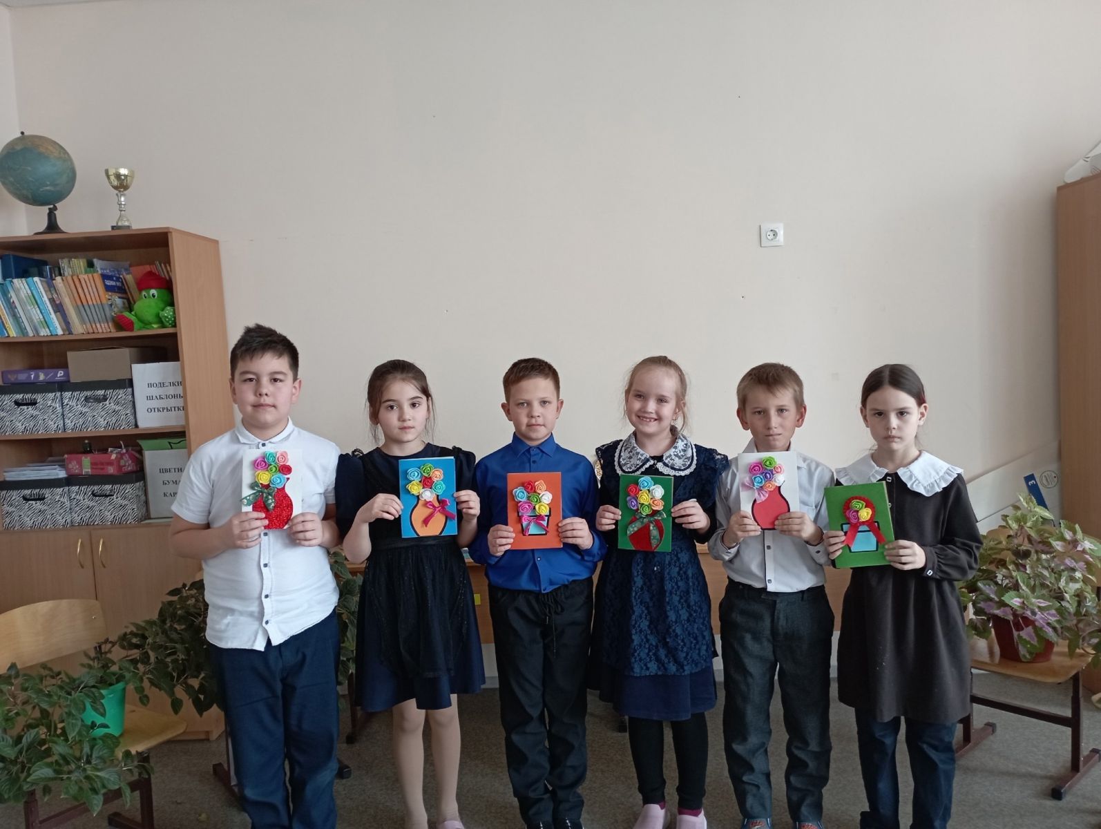 24 шаг проекта "80 шагов к Победе". Учащиеся делают поздравительные открытки для бабушек, для учителей ветеранов.