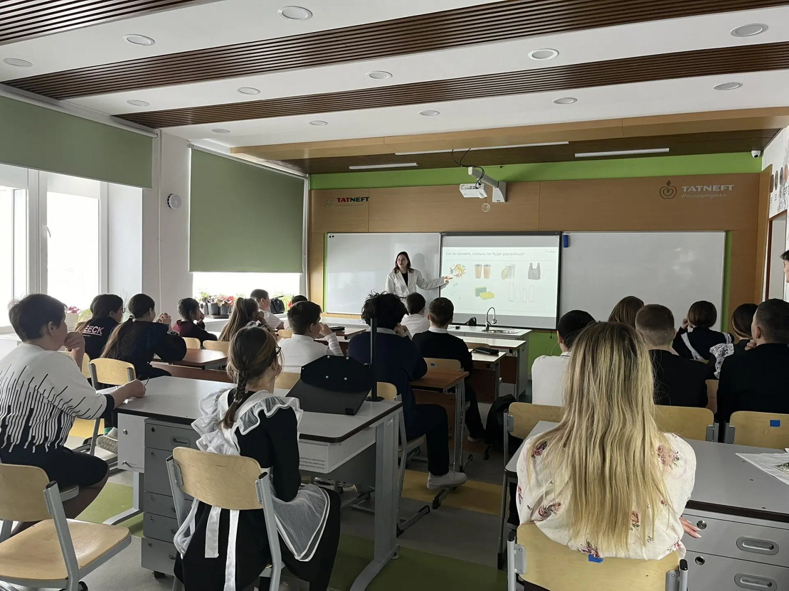 "НПО-Биотех" компаниясе вәкилләре мәктәп укучылары өчен мавыктыргыч дәресләр үткәрде, аларны калдыклар белән җаваплы эш итү дөньясына кертте. Чүп-чарны аерып җыюга һәм эшкәртүгә багышланган ЭКОдәрес үсеп килүче буынның экологик культурасын формалаштыруда мөһим адым булды. Балалар пластик, кәгазь һәм пыяланы сортларга аеру кебек гади гамәлләрнең безнең планетага калдыкларның тискәре йогынтысын сизелерлек киметә алуын белделәр. "НПО-Биотех" экспертлары эшкәртелгән чималдан нинди файдалы материаллар алып, кирәксез әйберләрне яңа эшләнмәләргә әйләндерергә мөмкин булуын ачык күрсәттеләр.