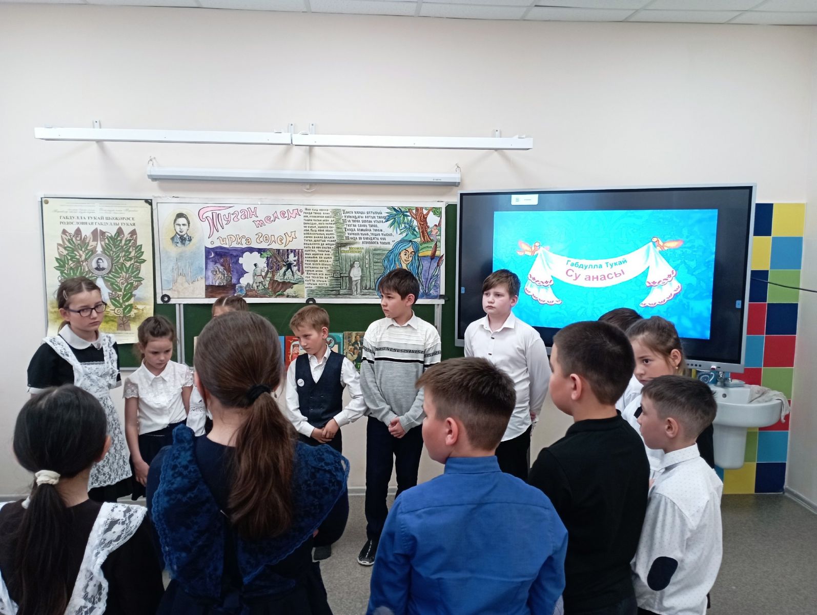 Сегодня – день рождения великого поэта Габдуллы Тукая. Не только в нашей республике, но и во всех странах, где проживают татары, сегодня прозвучали его бессмертные стихи, были возложены цветы к памятнику, народ почтил память своего великого сына. В нашей школе были организованы посвященные ему классные часы, в ходе которых ребята ещё раз прошлись по следам поэта, укрепили свои знания. В коридорах школы развешаны стенгазеты, рассказывающие о жизни и творчестве поэта, создан информационный стенд и уголок.