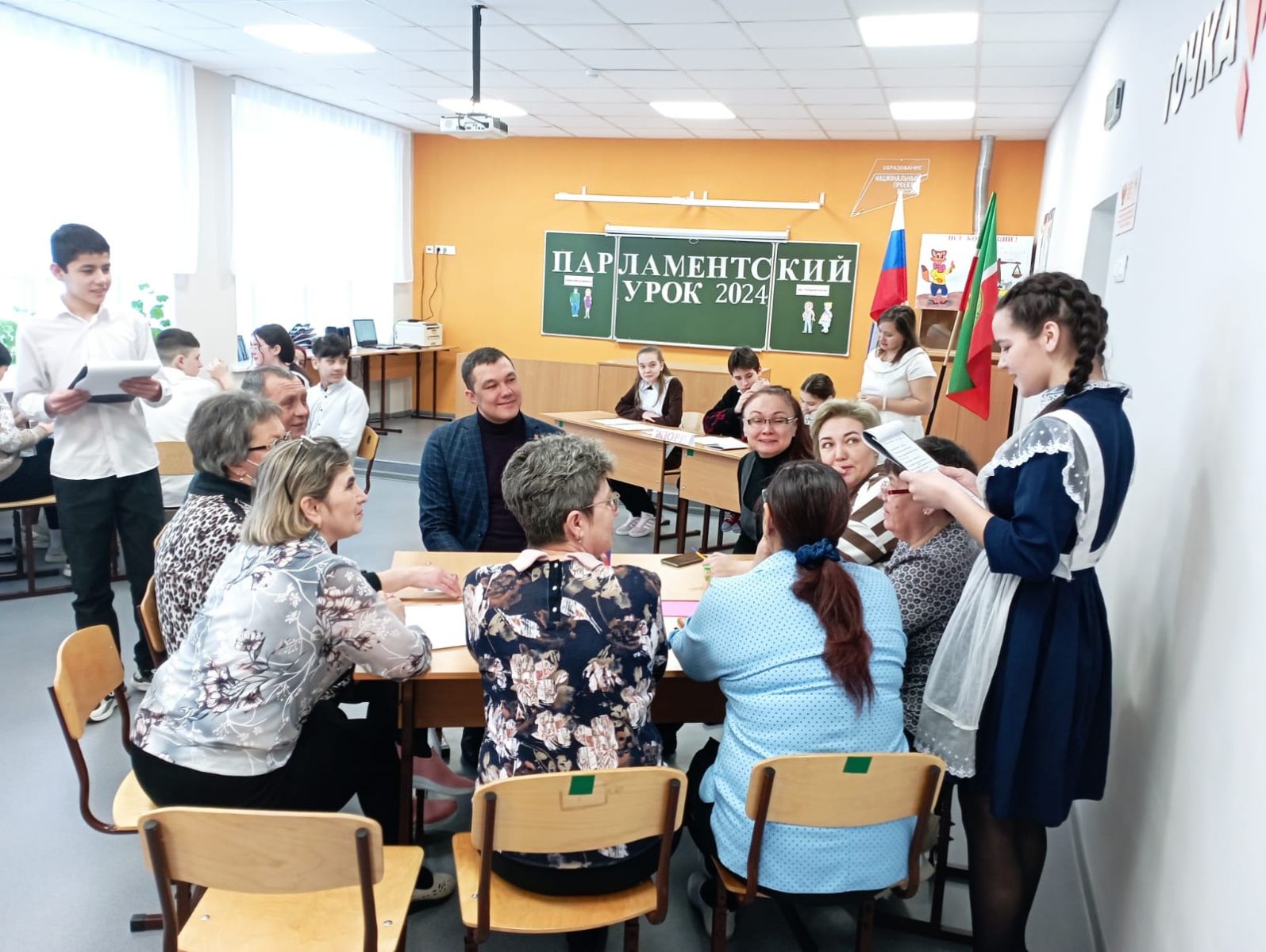 Мәктәптә «Киләчәкне сайлыйбыз!" темасына Россия Федерациясе һәм Татарстан Республикасы сайлау системасы нигезләрен аңлатуга багышланган парламент дәресе үтте».